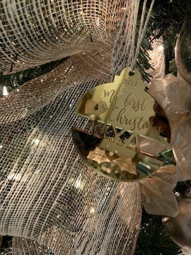 - Ornament is personalized with Baby’s First Name and Current Year. Please ensure correct spelling when typing your desired name.