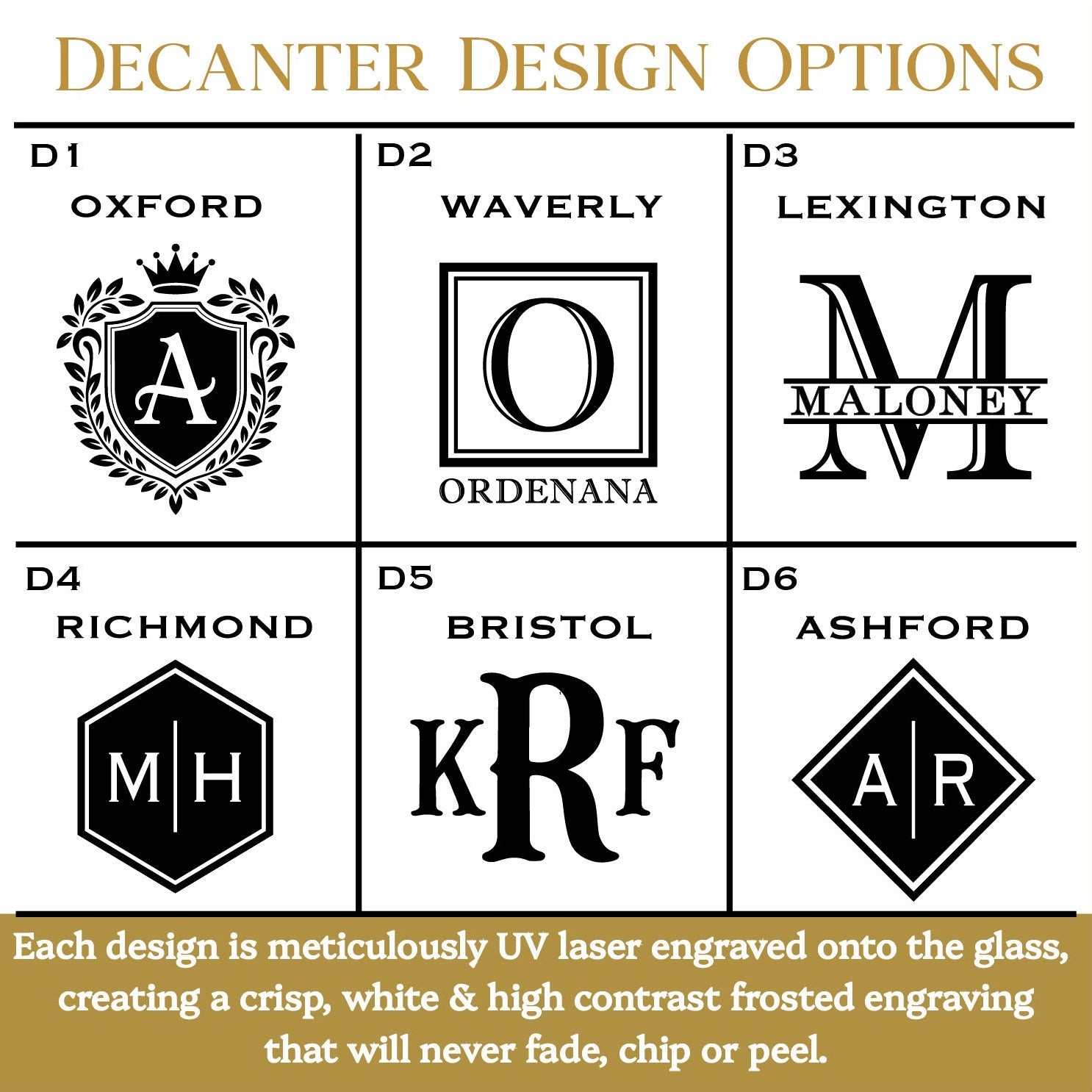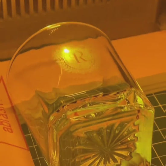 The decanter and all four glasses are engraved using advanced UV laser technology, creating a bright, high-contrast frosted finish that’s crisp, easy to see, and far more defined than standard CO₂ laser engraving. The engraving is permanent and will never fade, chip, peel, or wear away.