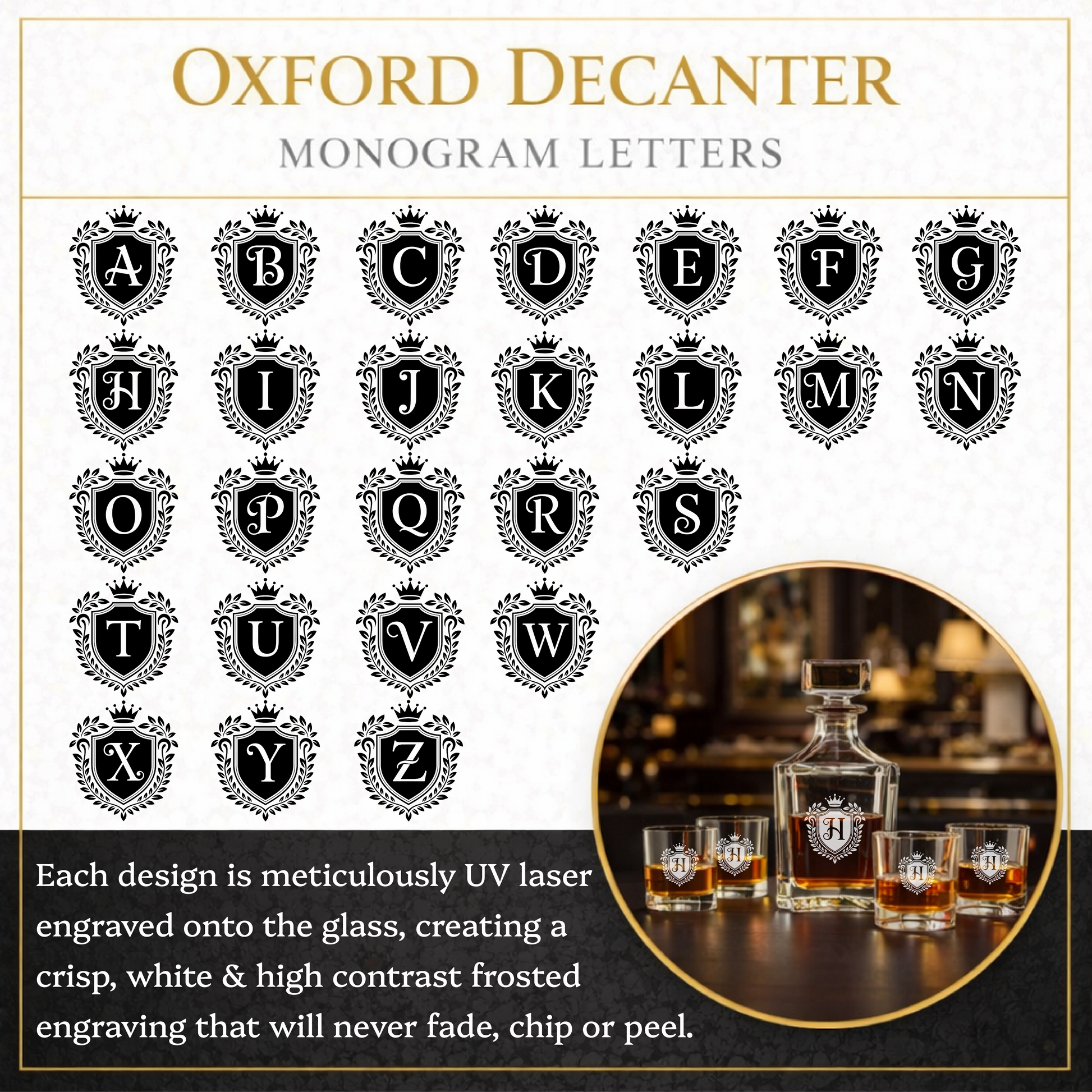 Personalized Etched Whiskey Decanter Set with 4 Rocks Glasses
